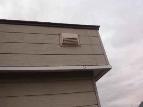 右下の写真は同じ建物ですが、屋根部分の外壁です。何らかの理由で後から、換気フードを取り付けているようです。 サイディングにも傷みが発生しています。 表面だけを直しても、また同じことの繰り返しになります。問題は内部です。