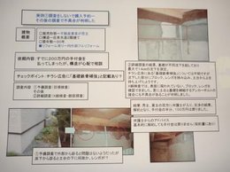 右の写真は今、私が参加してグループでこれらのトラブルを事前に防止しようと啓蒙活動の一環として、小冊子を作成中です。 出来上がれば、みなさんにご紹介いたしますが、 今日は私が担当している、その一部をご紹介します。 いろんな瑕疵担保保険も出てきていますが、 事前にリスク回避することがもっとも重要です。 第三者による専門家の診断(インスペクション)がご自分を守る手段になります。