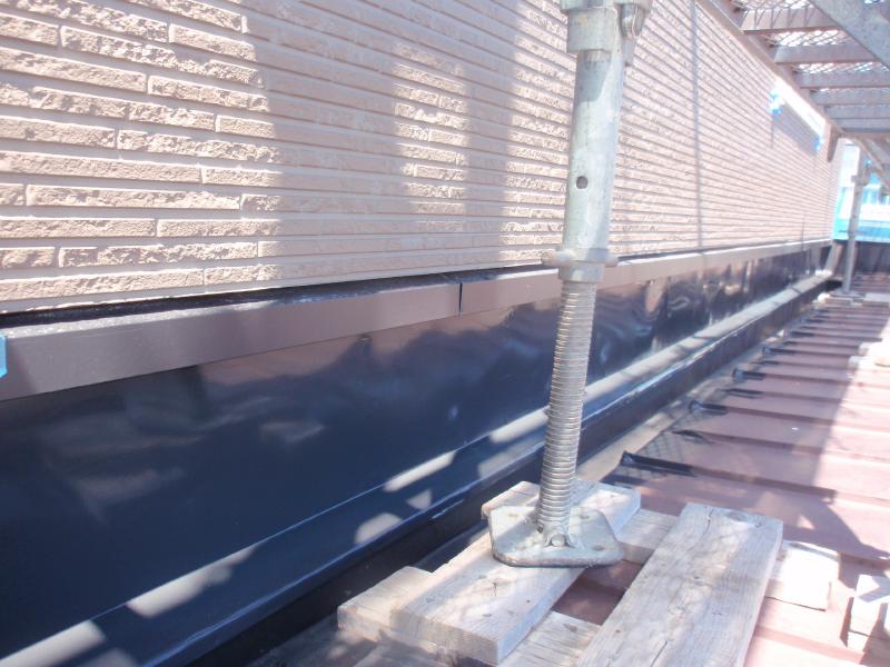 下の写真は下屋根板金の水切りと外装材の取り合い部分で「通気層」ですから、 コーキングで塞いではいけません。 一般の方が雨もりがしたので、ここをコーキングで塞いだ家を診たことがあります。 それは逆効果ですし、更にはシリコンコーキングを使用されていたので、後処理が大変です。 建物のメンテナンスはとても難しいです。 一般の方が少し勉強しただけでは上手くいきません。 チョットしたことでも、お気軽にご相談ください。