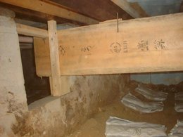 下の写真も不思議です? 床を支える梁(大引)が建築時ではなく、 後から改修されたような感じですが? 誰が、いつ、どうしてやったのか? 今、住んでいらっしゃる方は分らない? 微妙な状態なので、なんともスッキリしません。 このような改修の家暦があると もうすこし、スッキリするんですが?