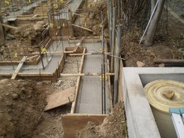 下の写真は次の工程である基礎の工事が 始まっています。 この部分は建物の基礎ではなく、土留めの 部分ですが、チョットびっくりしますよね。