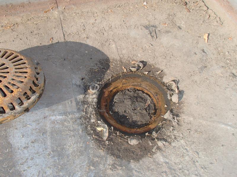 幸い自然に水が無くなったので? 排水の穴を診て見ると ドロで排水口が埋まっていました。 木の葉っぱではなく、ドロでした。 今回は私がドロを取って清掃しましたので もう雪が積もっても大丈夫です。