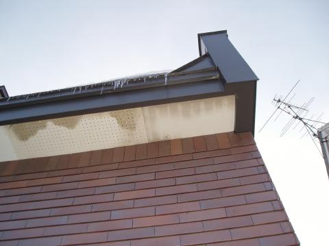 更にこの水は、壁の内部を通過して、 基礎の部分で、外部に流れ出し、 そこで凍っています。 この現象が続いていれば、 壁の中の木が腐ってきます。 とても心配な状態です。