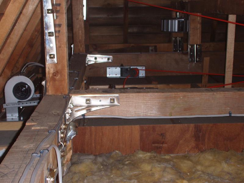 その次は小屋裏ですが 沢山の金物補強とワイヤー補強 さらに換気扇まで設置?