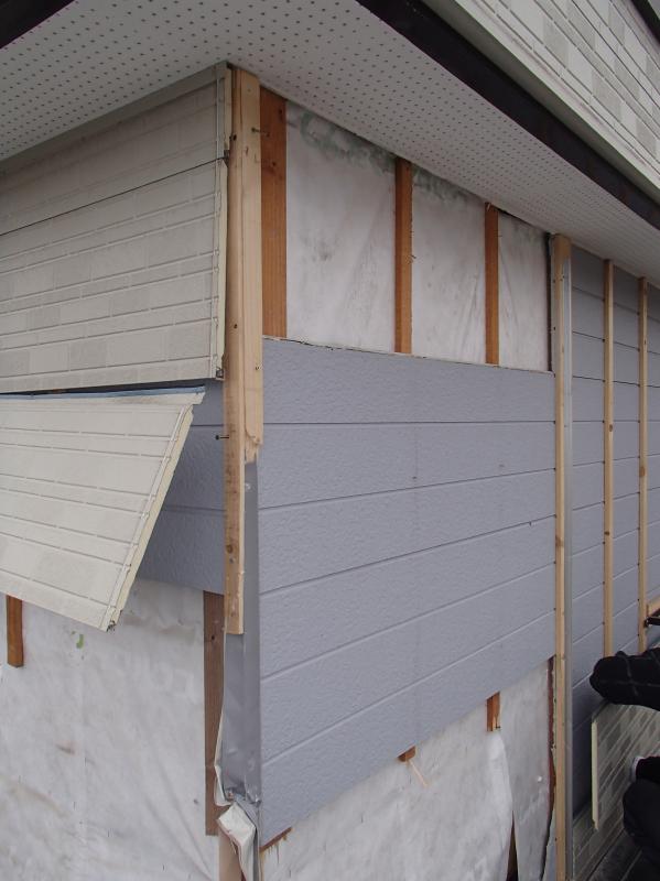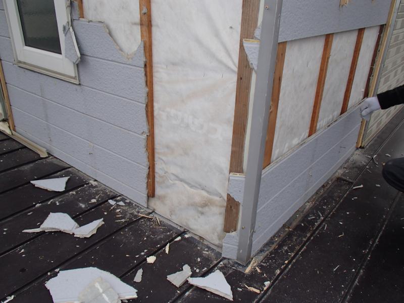 一層目の金属性サイディングを剥し