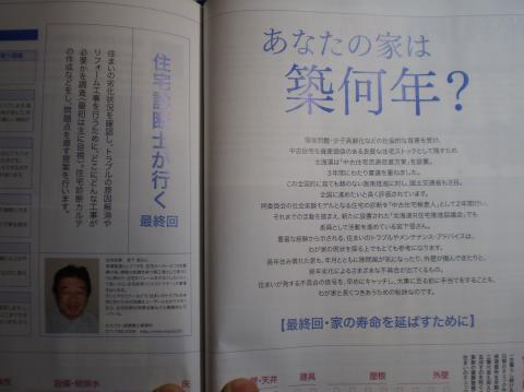 1年間(四回)、連載していた、住宅雑誌「リプラン」が最終回になってしまいました。 実例を使って、 家を長持ちさせるには・・・ 失敗してほしくないリフォーム 自己診断できるチェックシートなどなど かなり反響があり、連載してもらえましたが、次回からは別な形で参加させて頂きます。