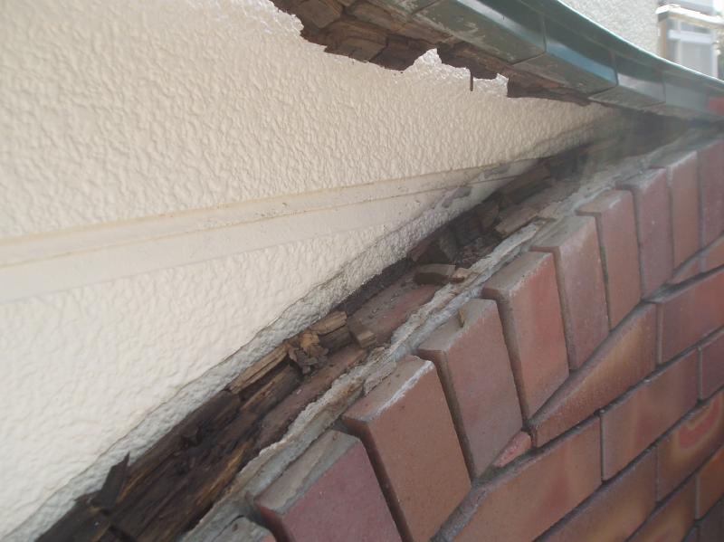その板金を剥がして見ると 下地の木が腐っています。 板金と外壁に隙間があり そこから、雨水が簡単に入ります。