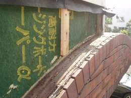 確かに天井に水シミもあるし、 レンガが剥がれかかってきていました。