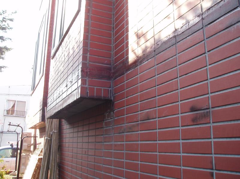 この建物は1階は鉄筋コンクリート造で 2階、3階は木造です。 この1階と2階の境目に 水がしみ出てくるので、 コーキングを自分でされたようです。