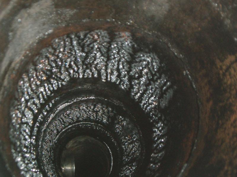 集合煙突の中を見ると 大量の水滴が流れ出してきていました。