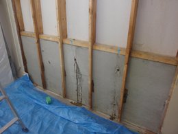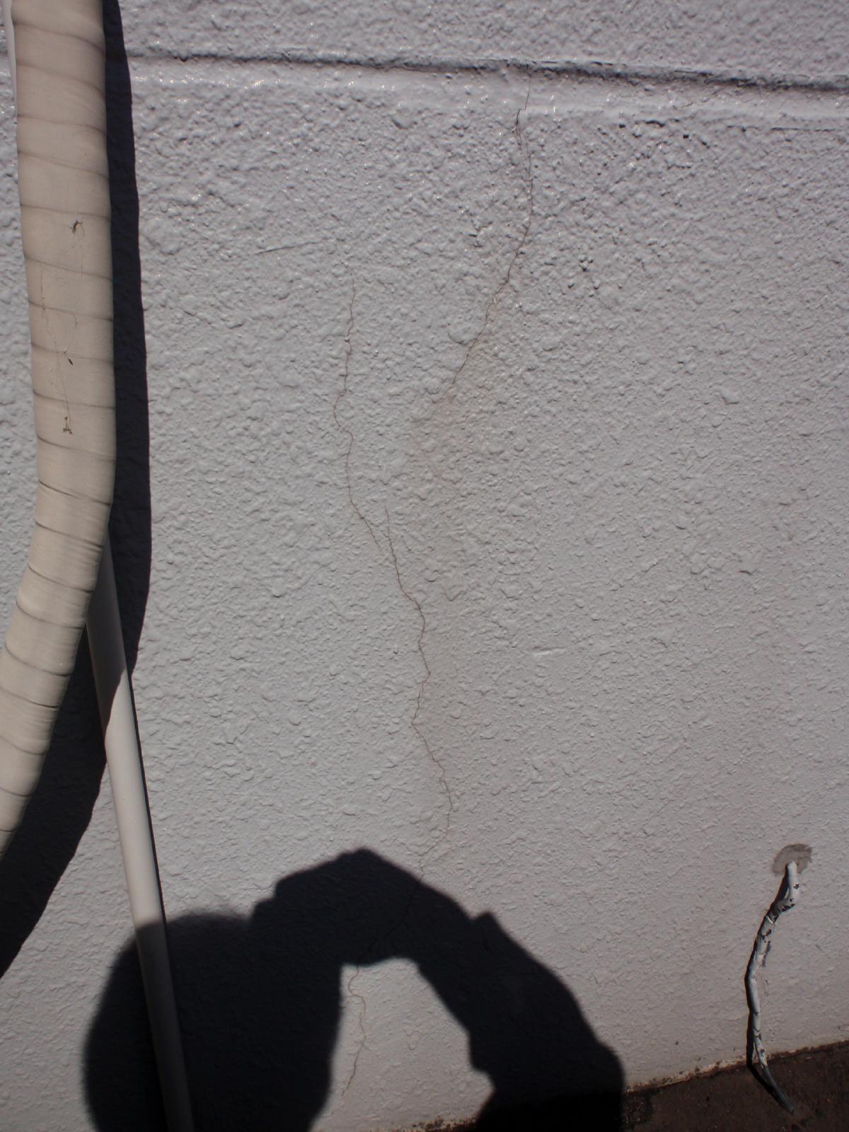 まず、仕上げ壁材の解体です。 外部の亀裂が同じ位置で 内部にもありました。