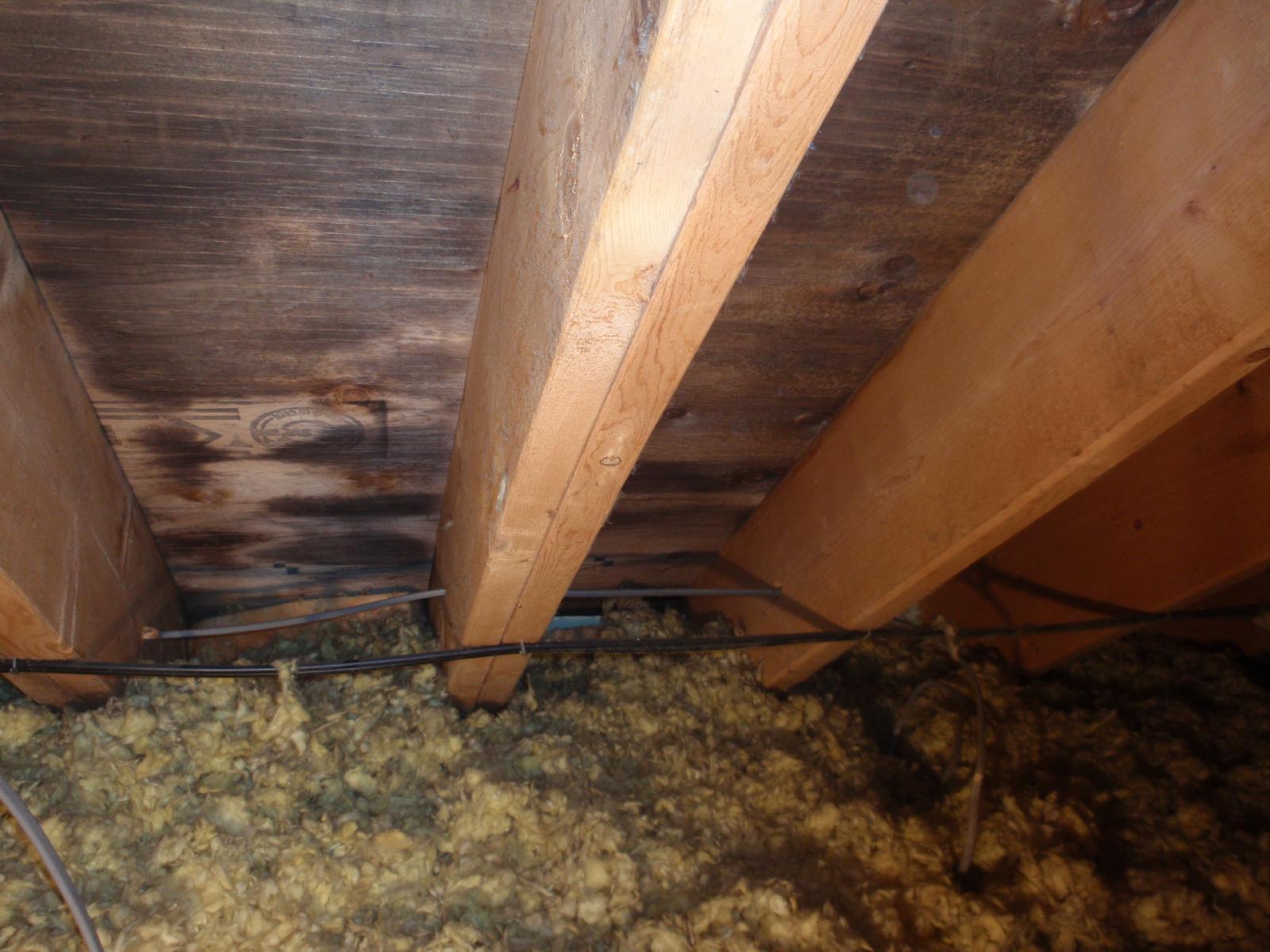 屋根の裏側の板である野地板(のじいた)の 一部で大量のカビが付着していました。