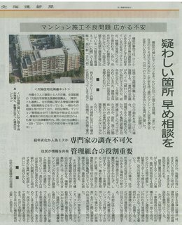 連日の報道で更にデータ改ざんの建物が報道されています。これは北海道新聞の掲載記事ですが私も参加メンバーである「欠陥住宅被害全国協議会ー北海道支部」のメンバーがコメントしています。ご参考になればと思います。