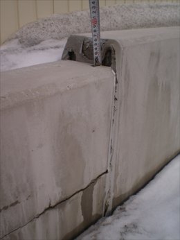 敷地内にある 鉄筋コンクリート製の塀に 段差が生じている例