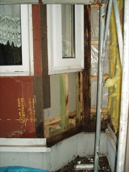 次に元の外装材を剥がすと 壁の内部が見えてきて 柱と土台が腐っていました。