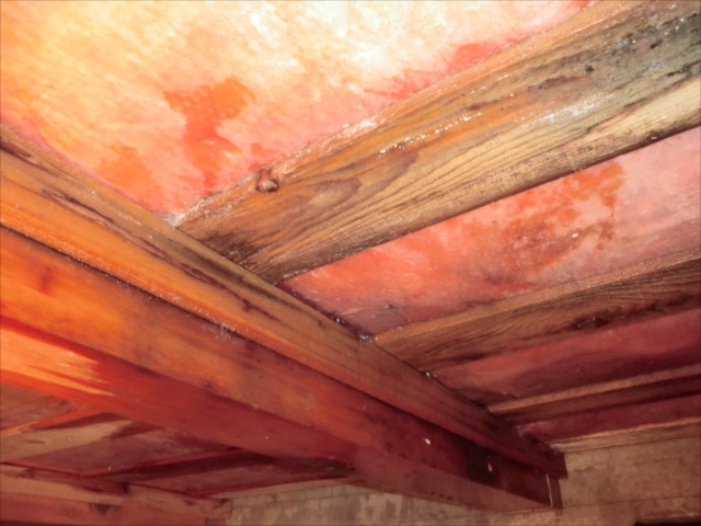 床のピンクの断熱材が たっぷり水を含んでいました。