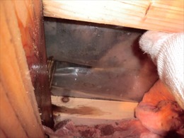 シートを剥ぐと 真黒く変色した合板 腐れまで進行しています。