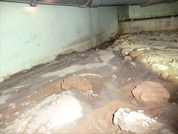 床下に入ってすぐ 水が流れたような跡が