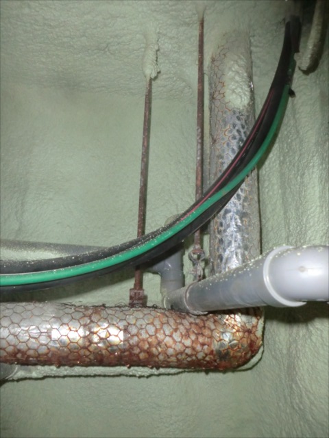 これだけ湿気が多いと 心配なのは 配管を吊っている ボルトの腐れです。