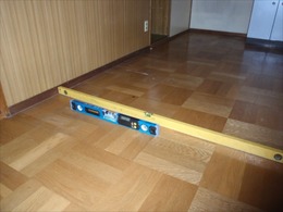 この写真は床の傾斜を直して いるようですが、 私は疑問です。