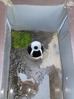 横ダクトから、縦ダクトへの 排水口に 落ち葉が入ったら危険と ザルをかぶせる方がいらっしゃいますが