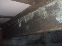 床下に入るとかなりカビ臭い 木材もかなり腐ってきています。