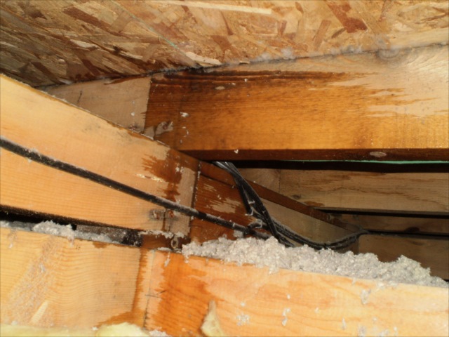まずは天井裏を確認すると 当然ですが、水が流れ出していました。
