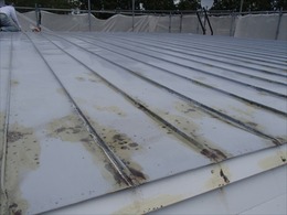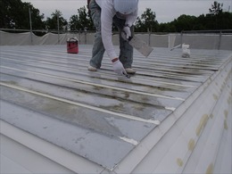 屋根面は全体に錆止め塗料を施工します。