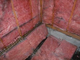 更にユニットバスの壁のすき間には 断熱材を充填します。 これは冷気を遮断する為のものです。