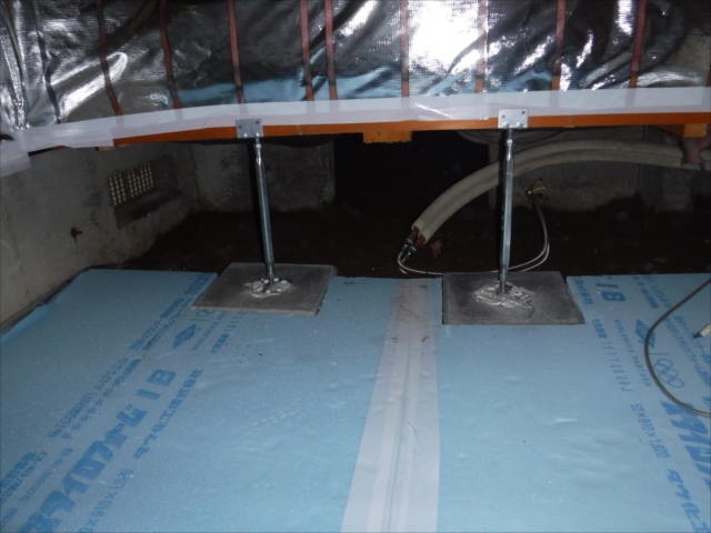 ユニットバスの床面には 断熱材を敷き詰めます。 これがないと 浴槽の床面が冷たく感じます。