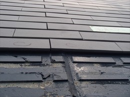 ベースボードサイディングの ジョイント部(コーキング施工)で タイルが盛り上がっているのが分かります。