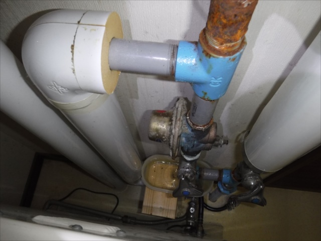 次の写真は水道管の漏水です。 現在の漏水は減圧弁の処ですが 配管自体が経年劣化がかなり 傷みが進んでいます。