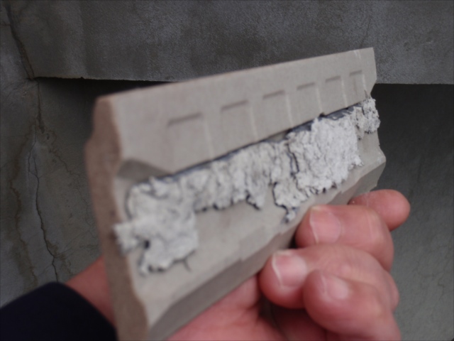 落下したタイルの裏面を見ると ベースサイディングの突起部が くっついています。