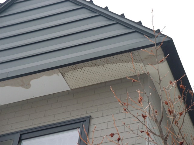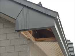 屋根板金を流れた水が 真直ぐ下に流れないで 巻き込む状態で横に流れ