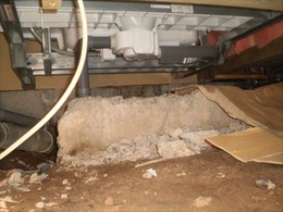 床下から見ると床の傾斜を直す工事は しているのですが、 土台が腐っていました。