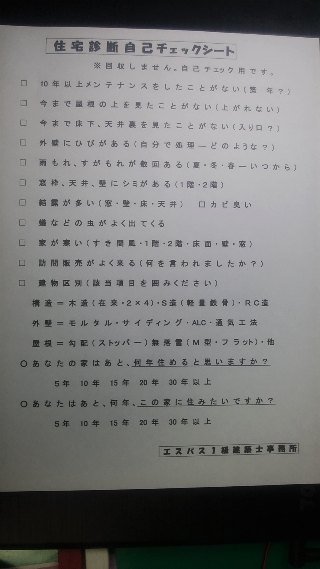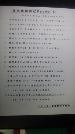 この「住宅診断自己チェックシート」は 私がセミナーでお配りしているシートです。