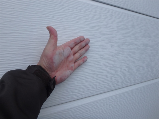 外壁に手を擦りつけて 塗装が手に付いたら、 そろそろ、メンテナンスの 時期ですよという お知らせです。