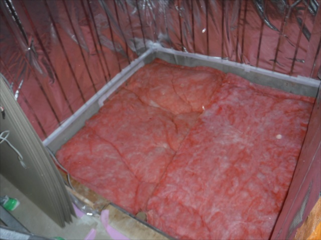 2枚目の写真はその床の部分に ユニットバスの設置の前に断熱材を 施工しています。