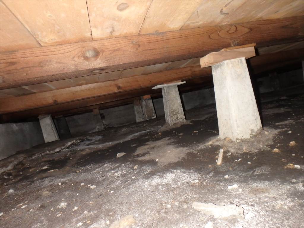 3枚目の写真は 築年数の古い、和室の床を床下から撮影。 床面に断熱材はありません。 古い住宅では、結構、見かける状態です。