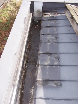 次の写真は 横樋ダクトに泥などが堆積しています。 これも排水の妨げになりますので 定期的な清掃をお勧めします。 特に冬になる前が必要です。