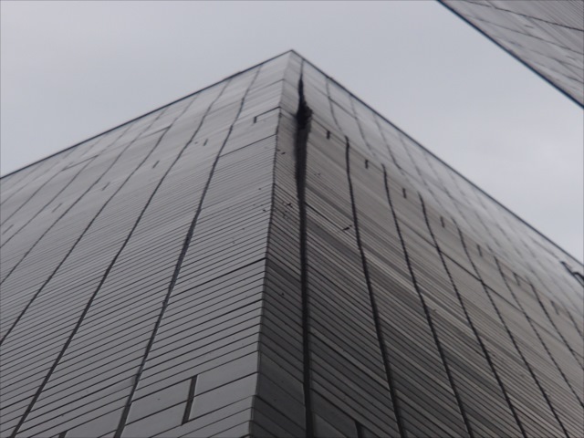 サイディングにタイルを引っ掛ける工法。 この現象は凍害でサイディングが破壊され タイルが剥離、落下したものです。