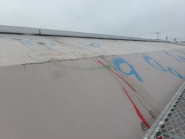 1枚目の写真は外壁ではなく 斜めの屋根の部分です。 ここは外壁と同じ塗装では劣化が早いです。