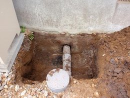 今回のお家はその床下の地面のある部分だけがぬれていました。 それは洗面所、浴室、台所と水周りに限られていました。当然、配管(給水管、排水管)を調べて診ました。いずれも配管からの漏水はありませんでした。更に地面の土を掘って診ると排水管の周りが特にぬれていました。どんどん、掘っていくと排水管と基礎の間にすき間がありました。 このすき間から、外に降った雨水が流れ込んでいます。 このすき間を埋めれば、問題は解決しますが、家の将来を考えると床下全体の湿気対策が必要です。 床下全面にビニールシートを施工する工事も実施しました。 床下は普段、皆さんが見るような場所ではありませんが、劣化は年数と共に徐々に進んでいきます。 手遅れにならないように、ご注意ください。