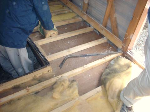 右上の写真は40年前の一般的な仕様の1階床の断熱材です。床の断熱改修は面倒でお金が掛かるので、なかなかやりませんが、足元が寒いと天井や壁の断熱を改修しても改善されません。